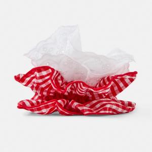 2 Pack Frilly Hair Scrunchies - Red and White