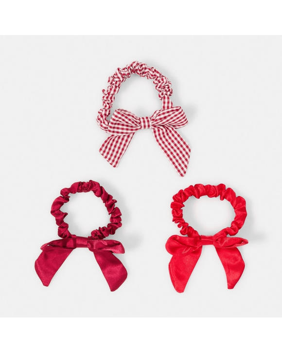 3 Pack Bow Hair Scrunchies - Red