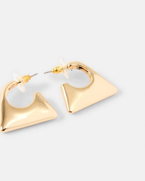 Small Puff Triangle Hoop Earrings - Gold Tone