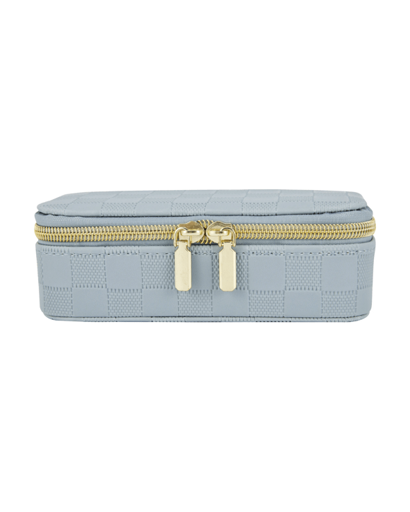 Blue Check Small Zip Jewellery Case