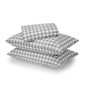 Gingham Cotton Flannelette Sheet Set - Queen Bed, Grey