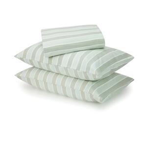 Stripe Flannelette Cotton Sheet Set - King Bed, Sage