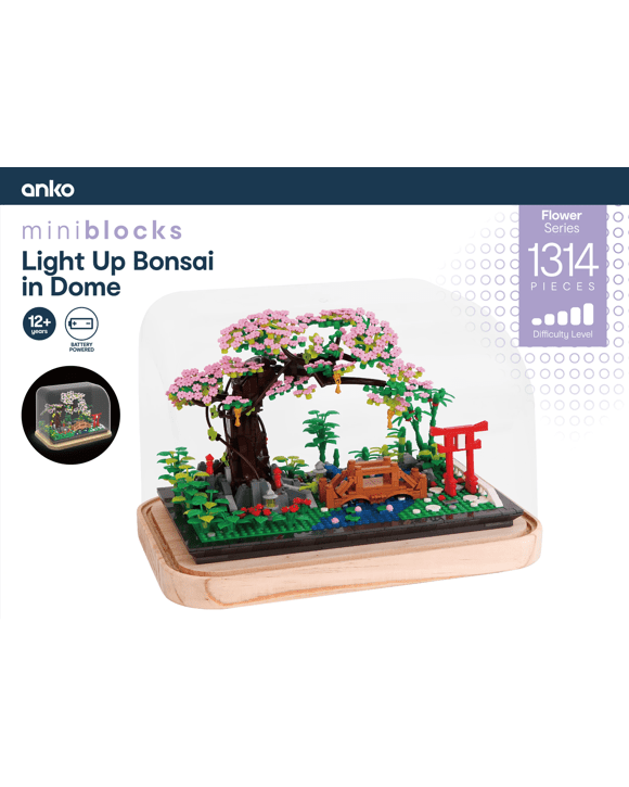 1314 Piece Mini Blocks Flower Series: Light Up Bonsai in Dome